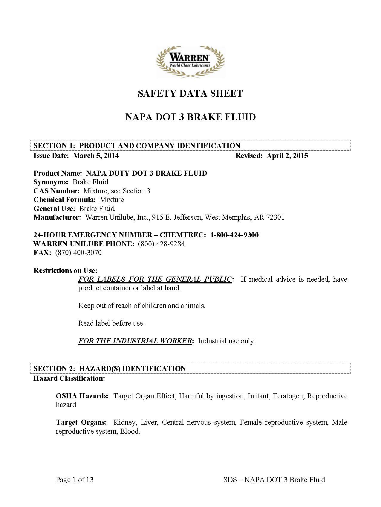 Safety Data Sheet 101