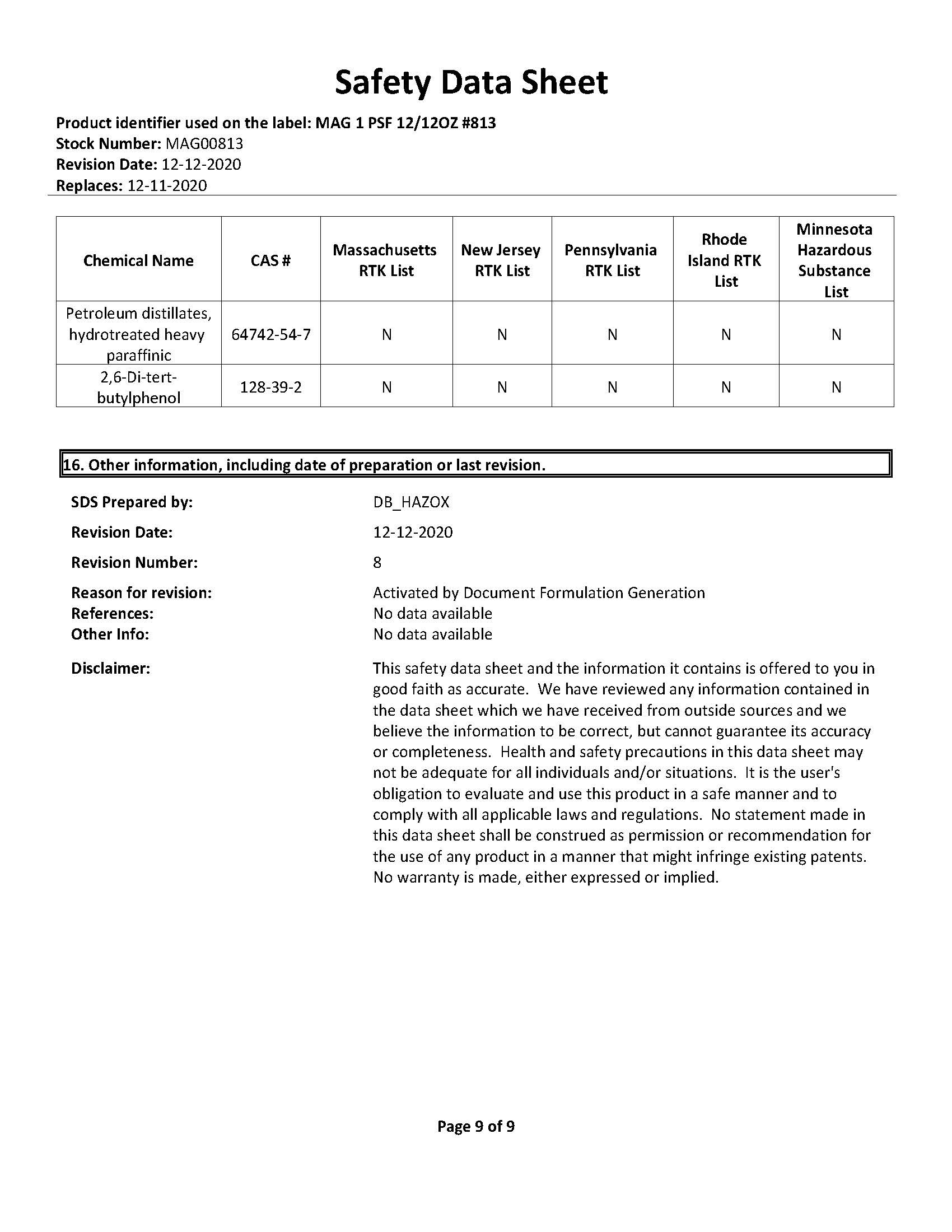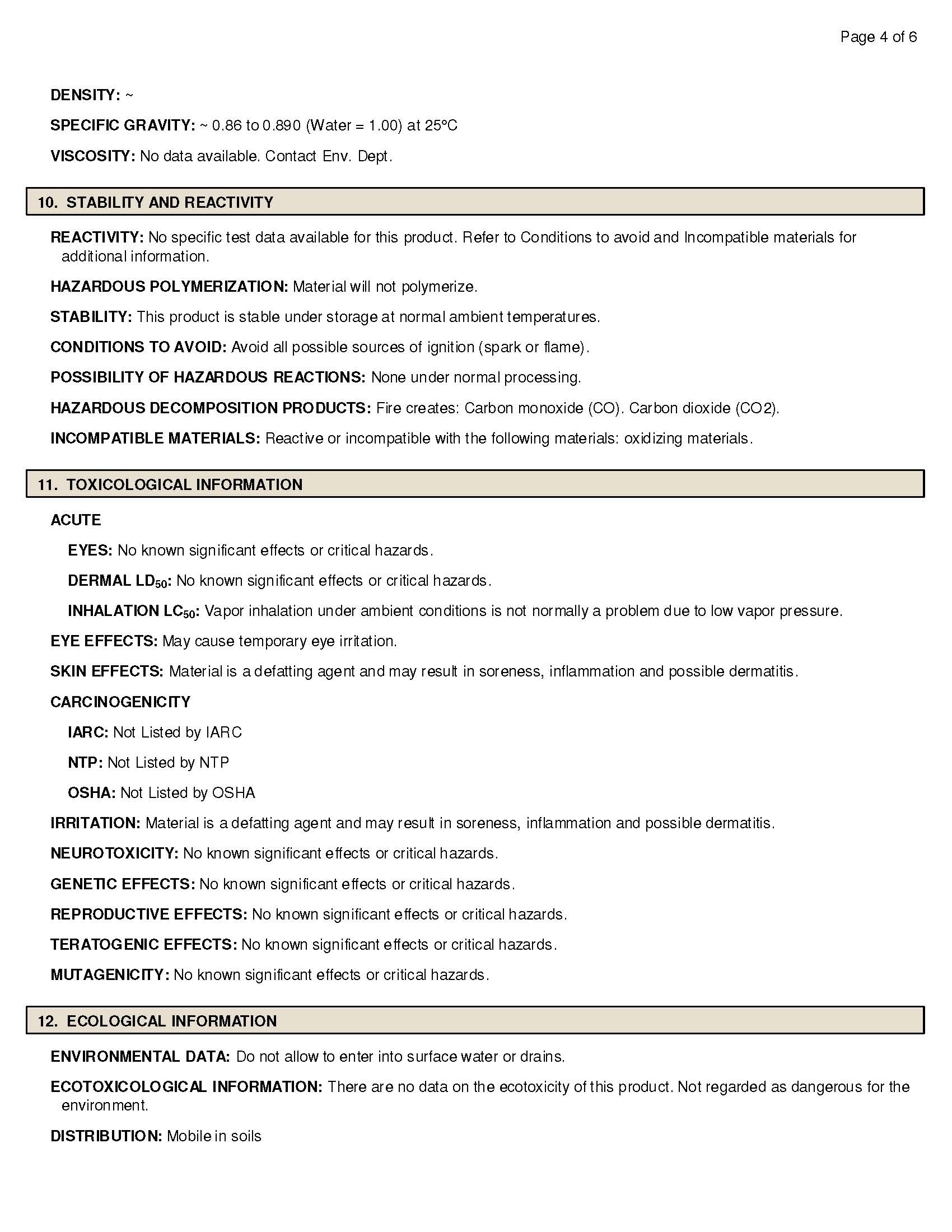 Safety Data Sheet 101