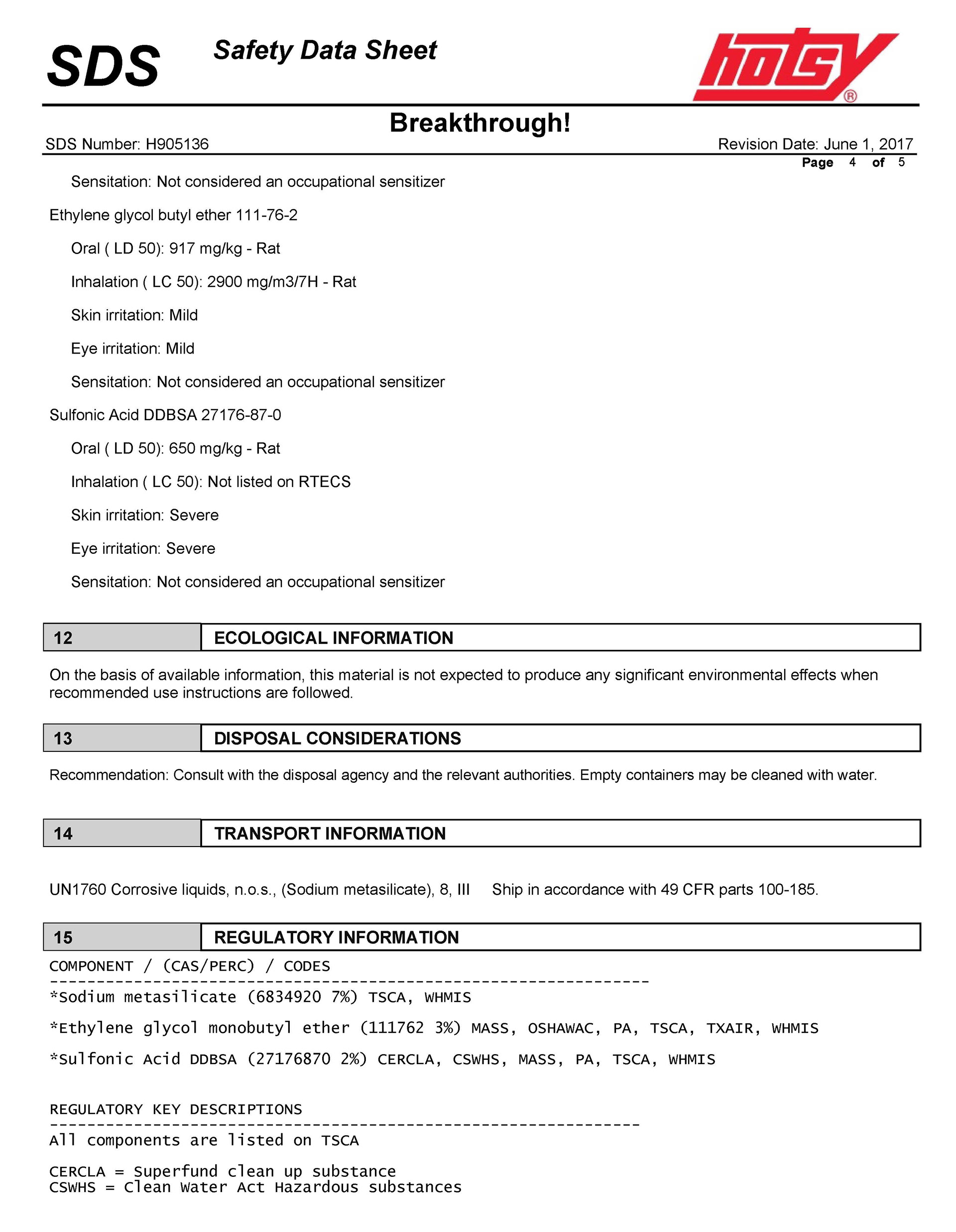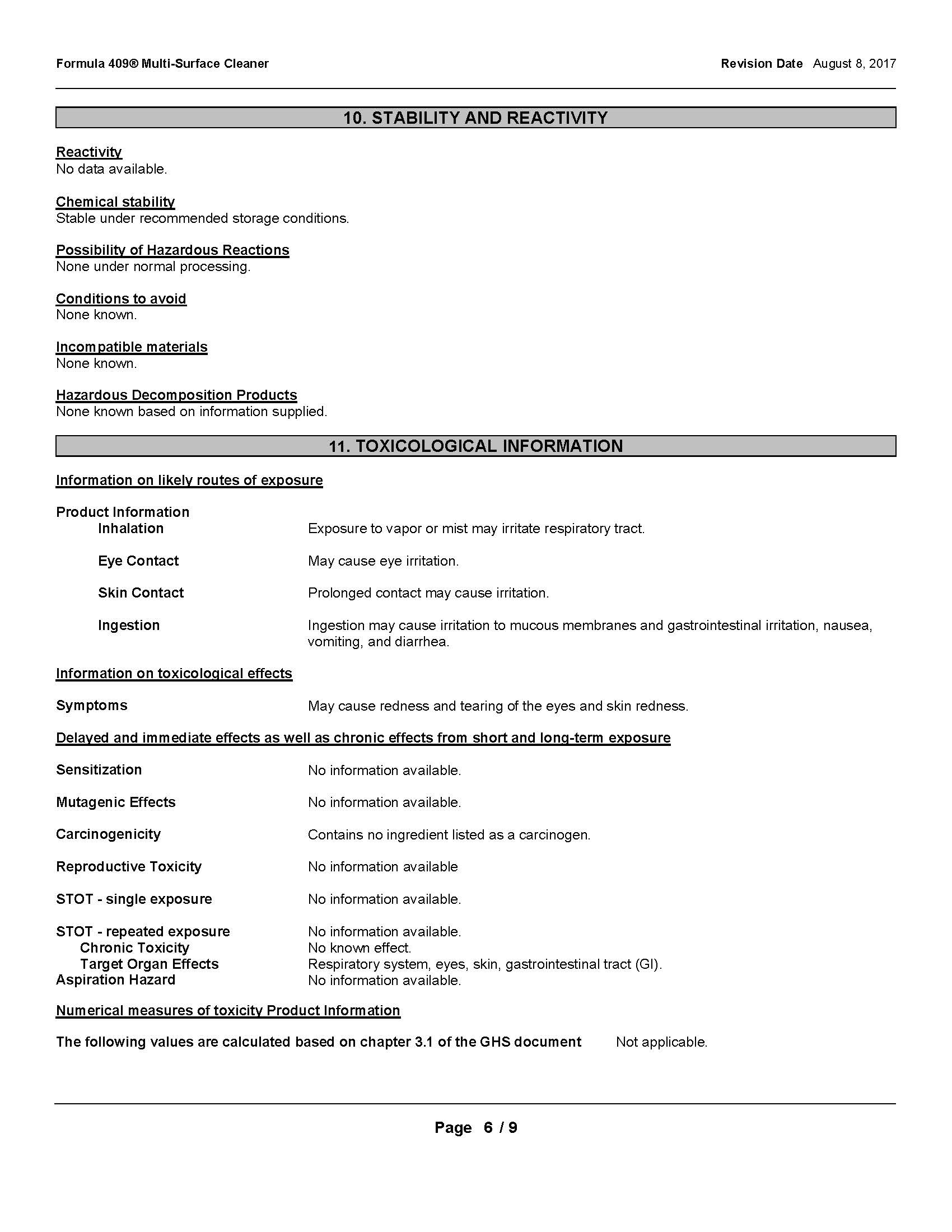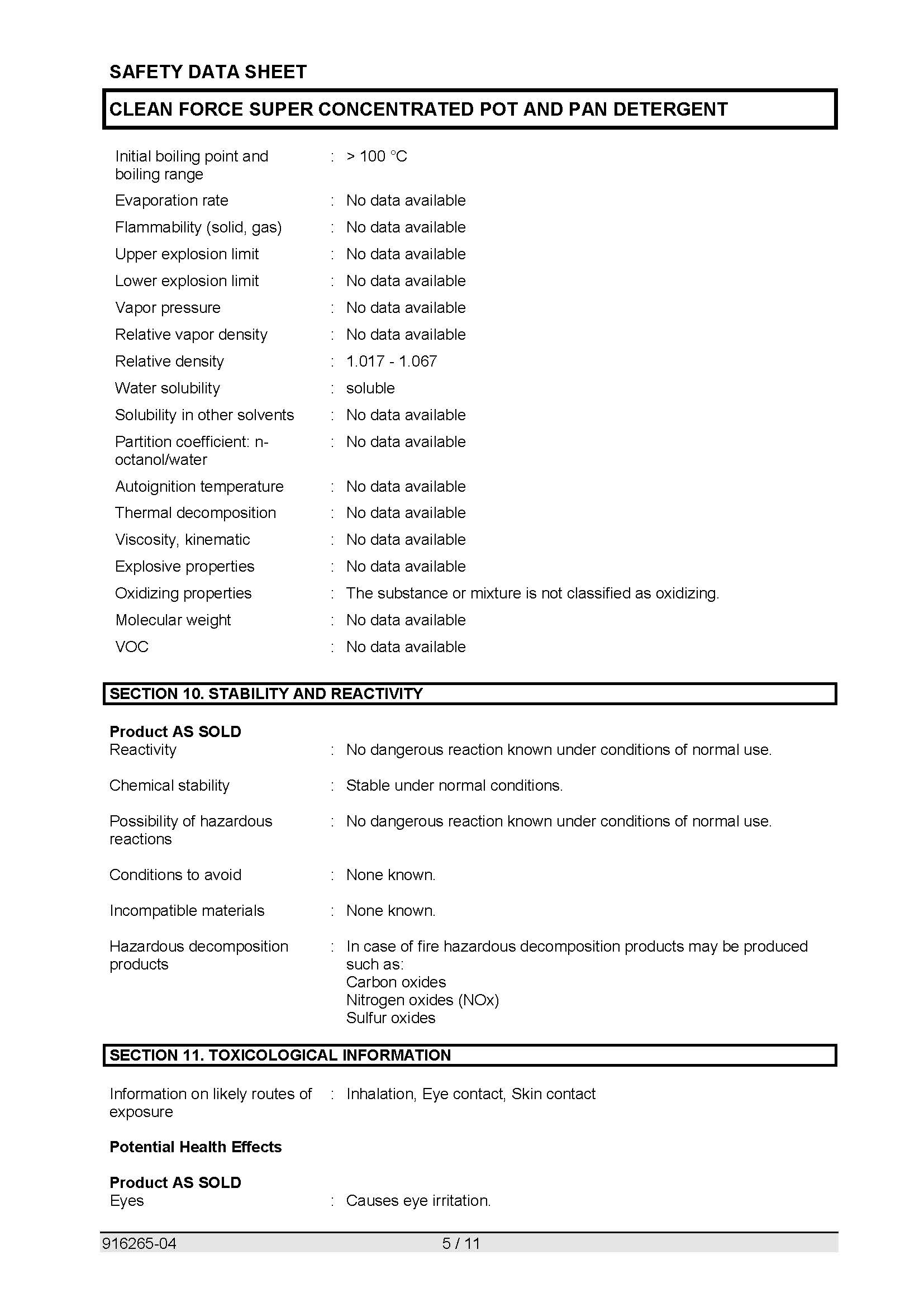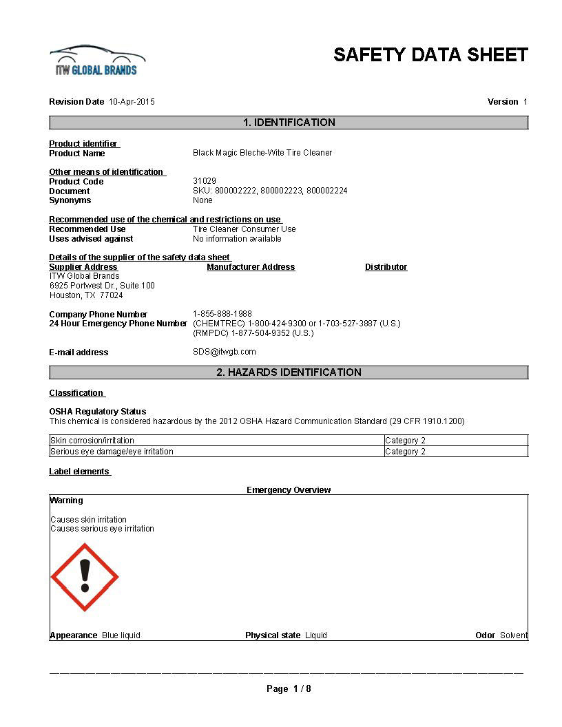 Safety Data Sheet 101