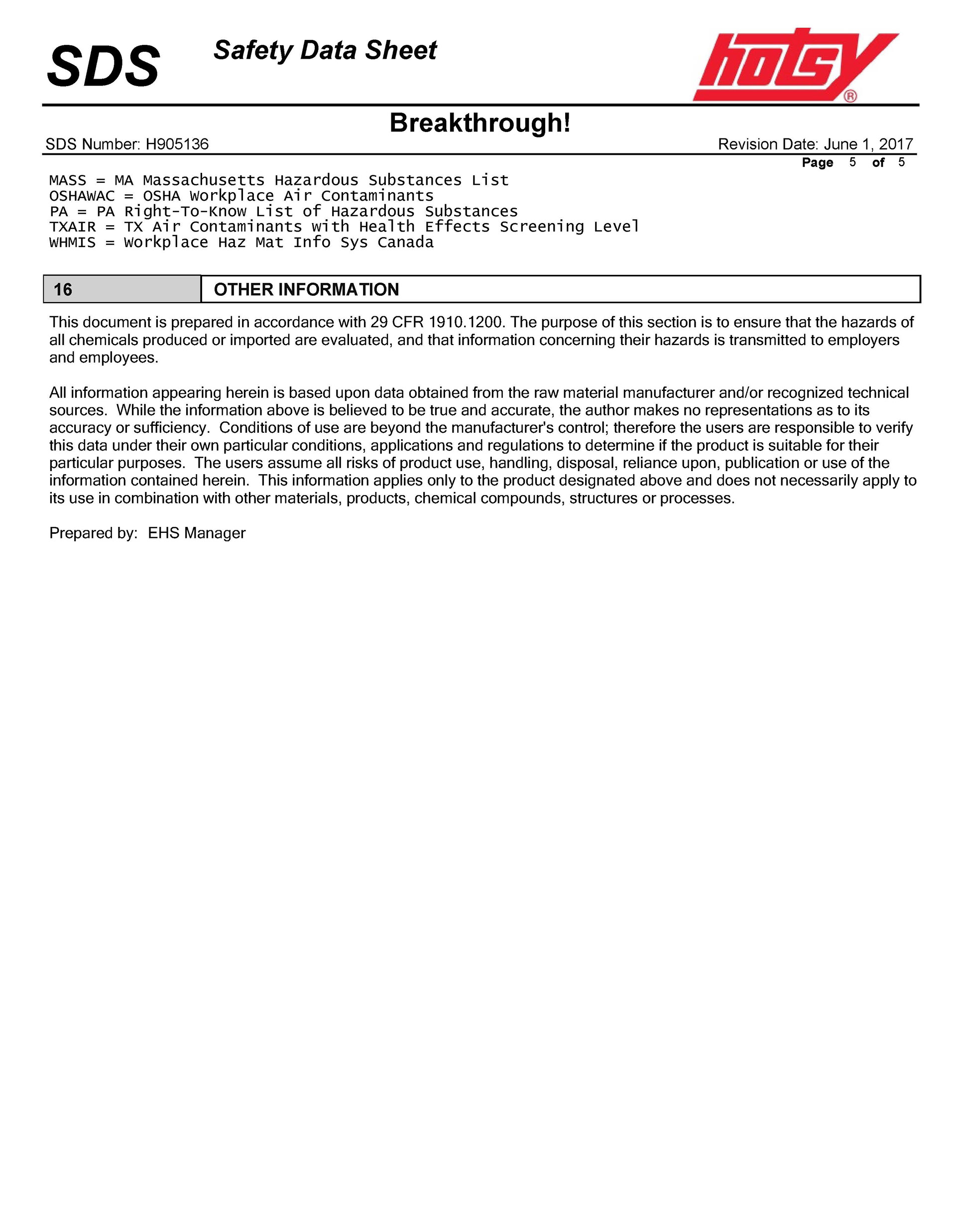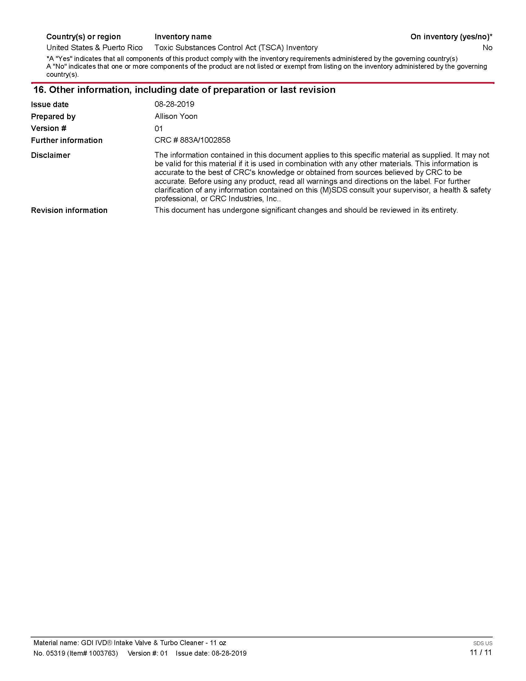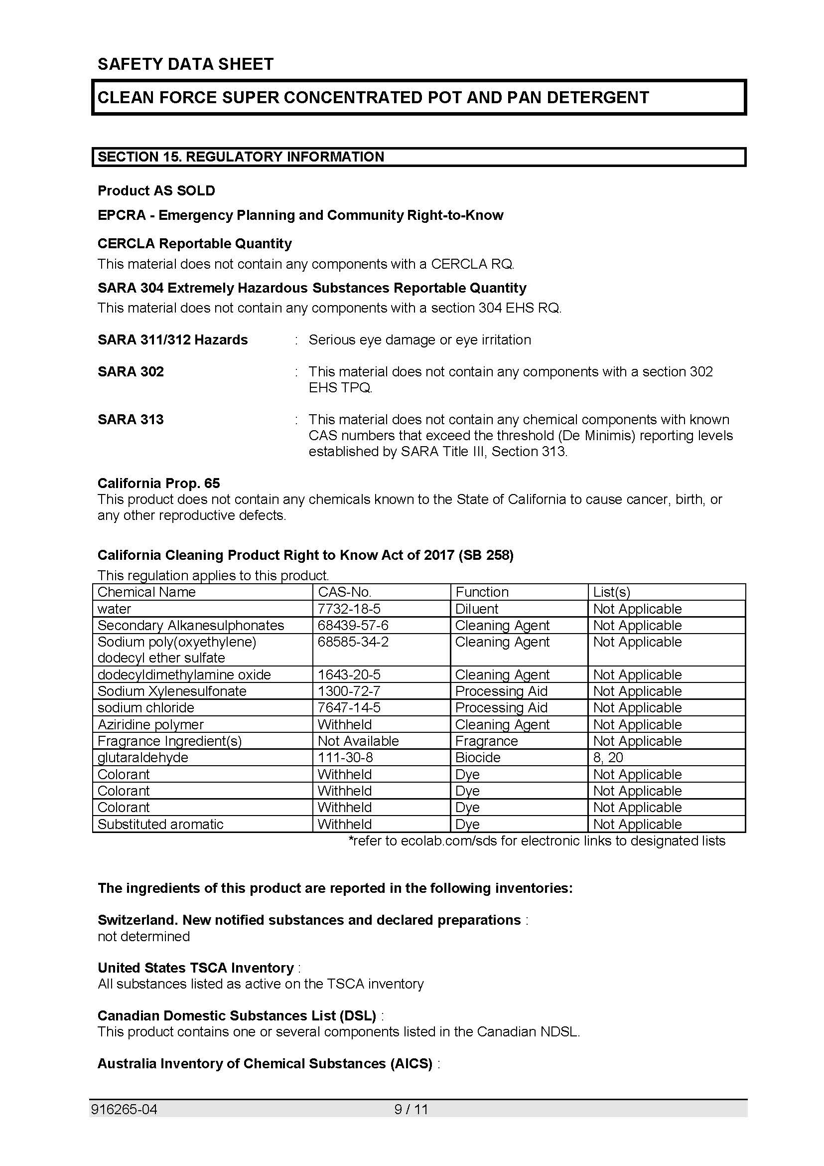 Safety Data Sheet 101