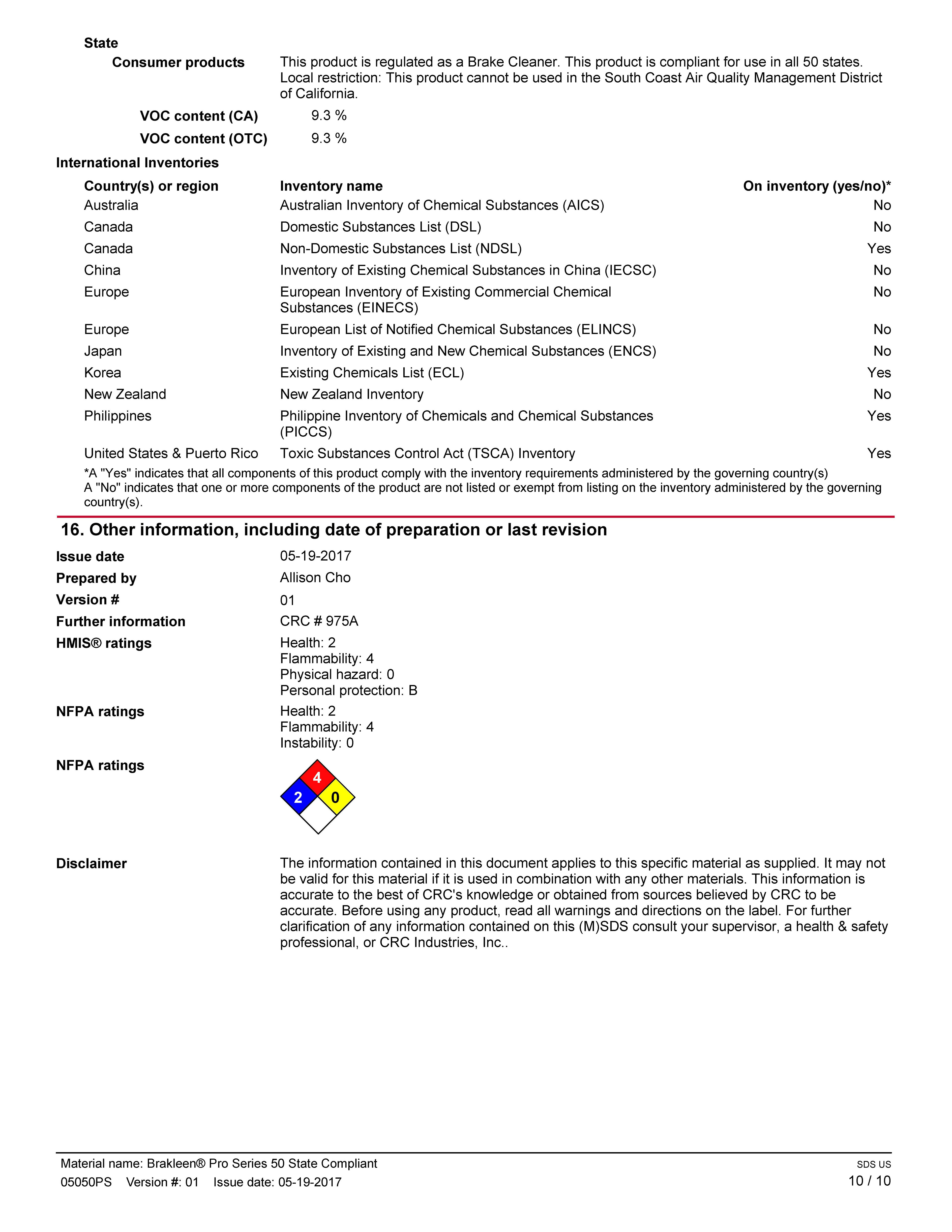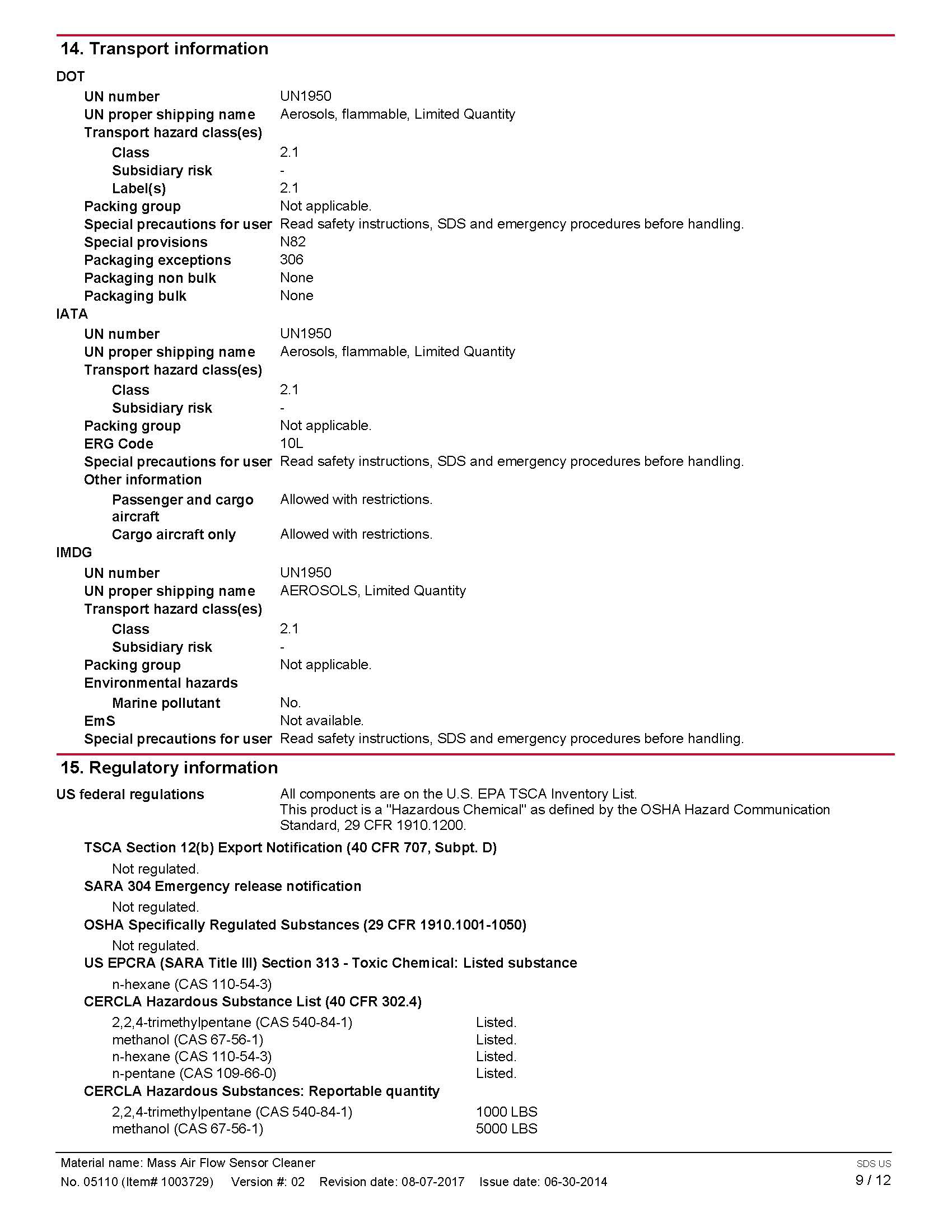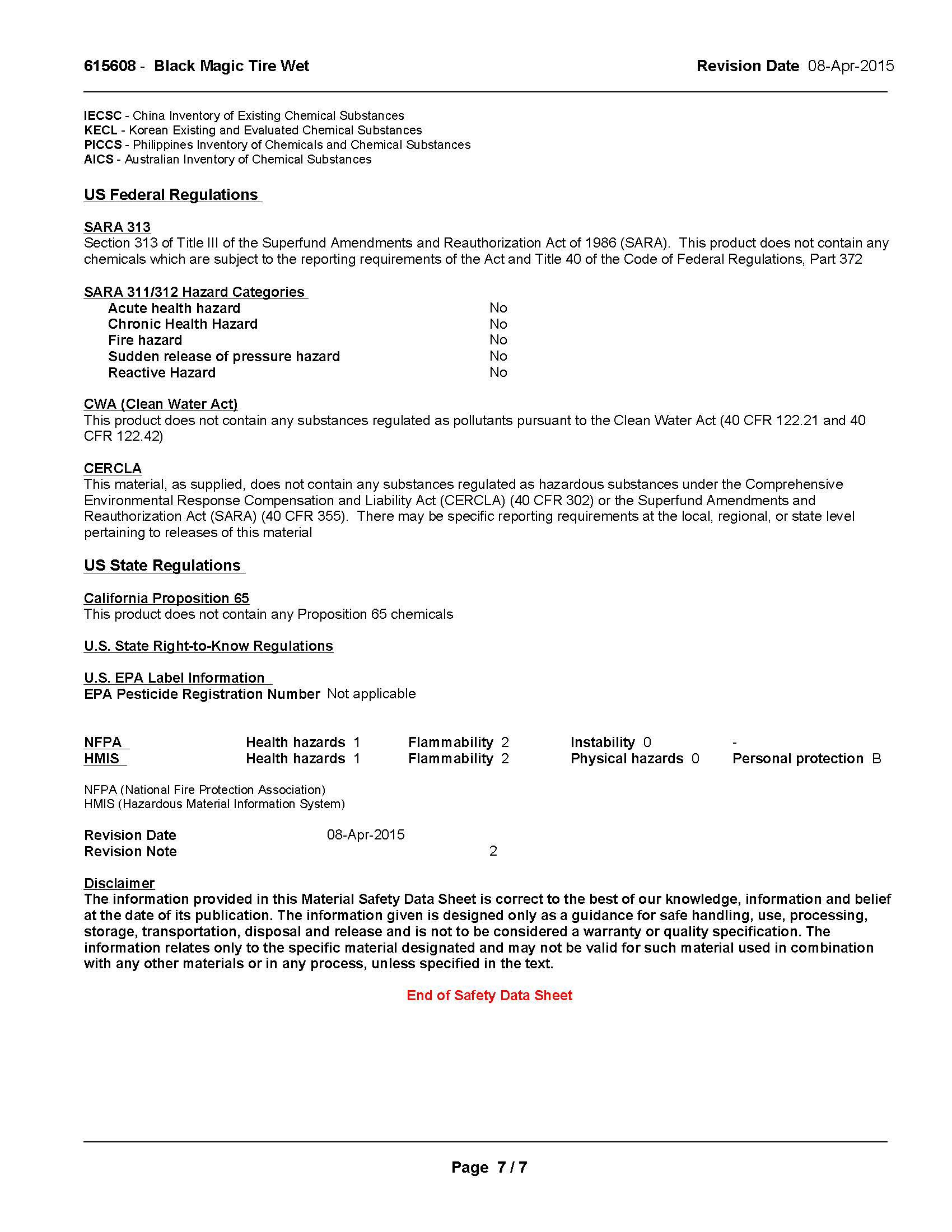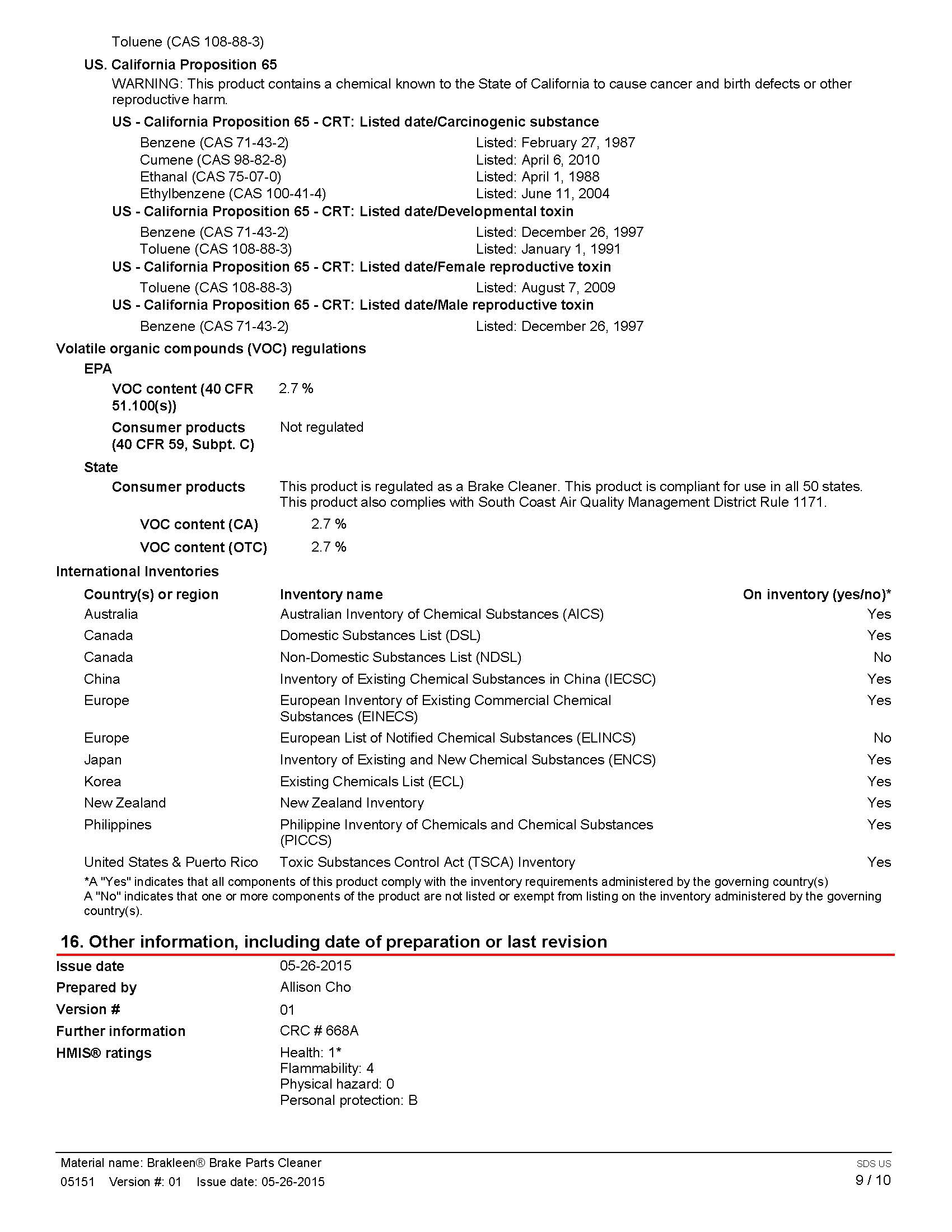 Safety Data Sheet 101